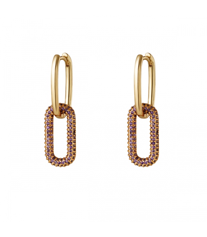Goudkleurige oorhangers met paarse zirkoonsteentjes in de hanger klein.