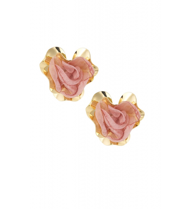 Deze oorhangers zijn een perfecte toevoeging aan je sieradencollectie. De combinatie van goudkleurig metaal en zachte roze stof creëert een verfijnde en vrouwelijke look. Ze zijn ideaal voor zowel dagelijkse outfits als speciale gelegenheden.