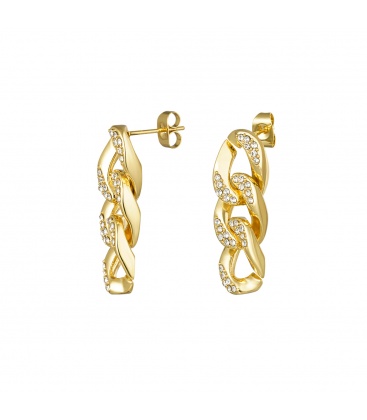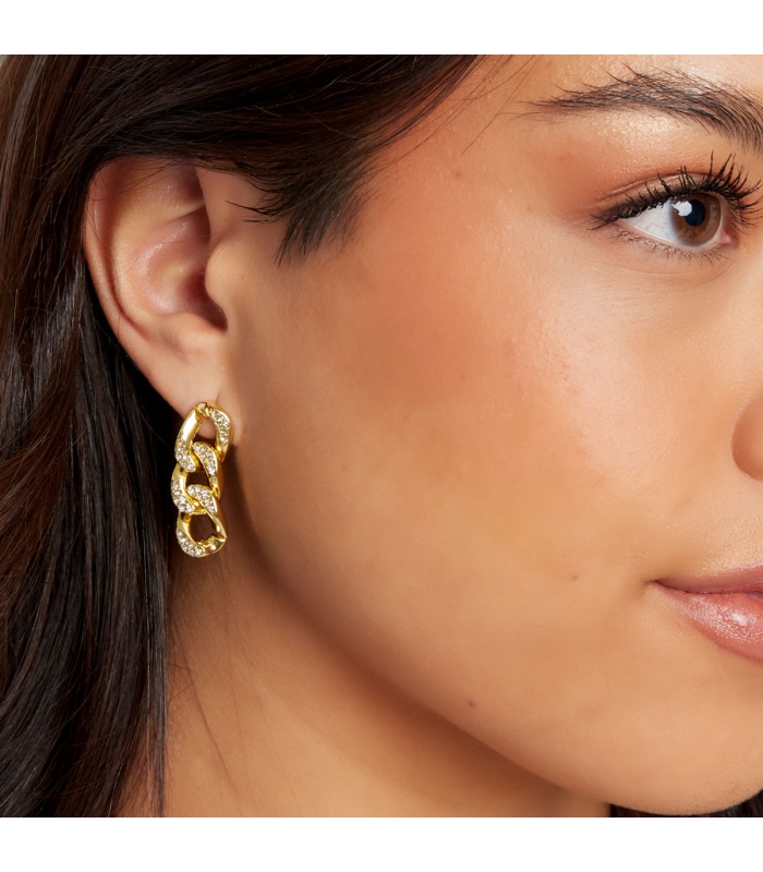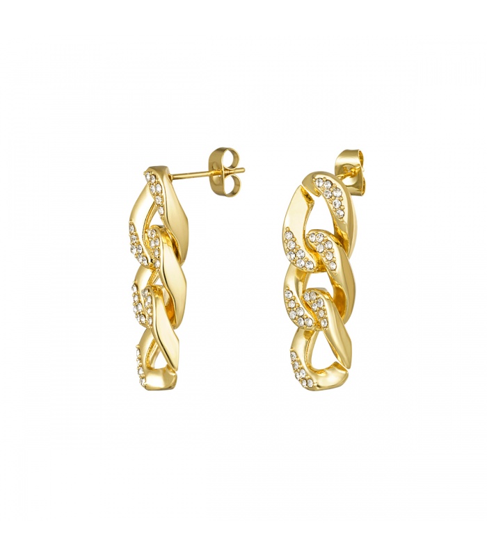 Goudkleurige oorhangers met schakels en zirconia steentjes.