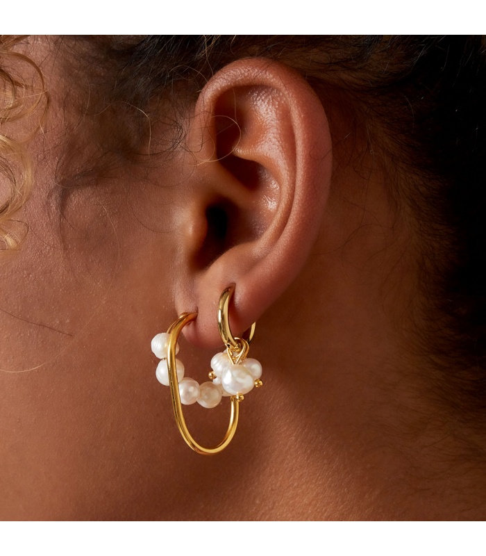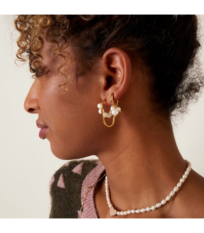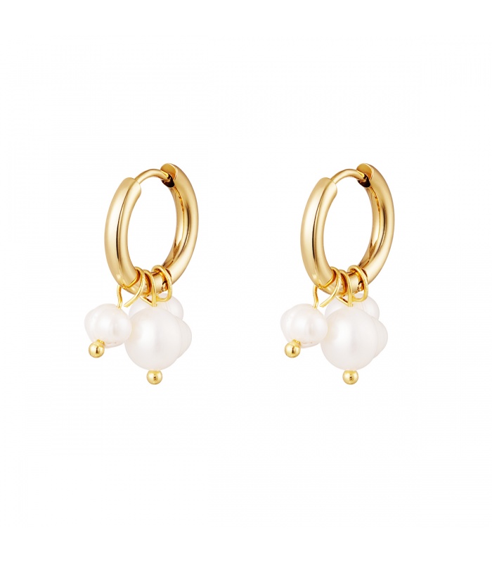 Goudkleurige oorringen met bungelende parels.