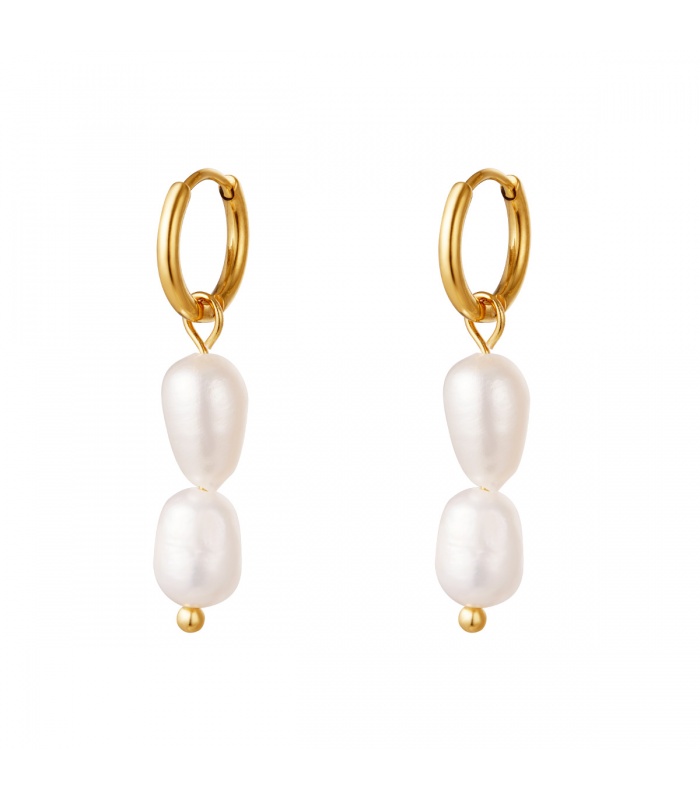 Goudkleurige oorringen met natuurlijke parels.