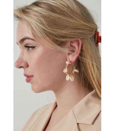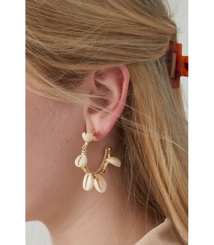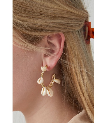 Trendy goudkleurige oorringen, verfraaid met delicate roze kraaltjes en schelpjes voor een subtiele maar opvallende look. Deze prachtige oorbellen voegen een vleugje zomerse glamour toe aan elke outfit, of je nu op het strand bent of een avondje uit gaat.