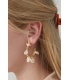 Goudkleurige oorringen met roze kraaltjes en schelpjes.