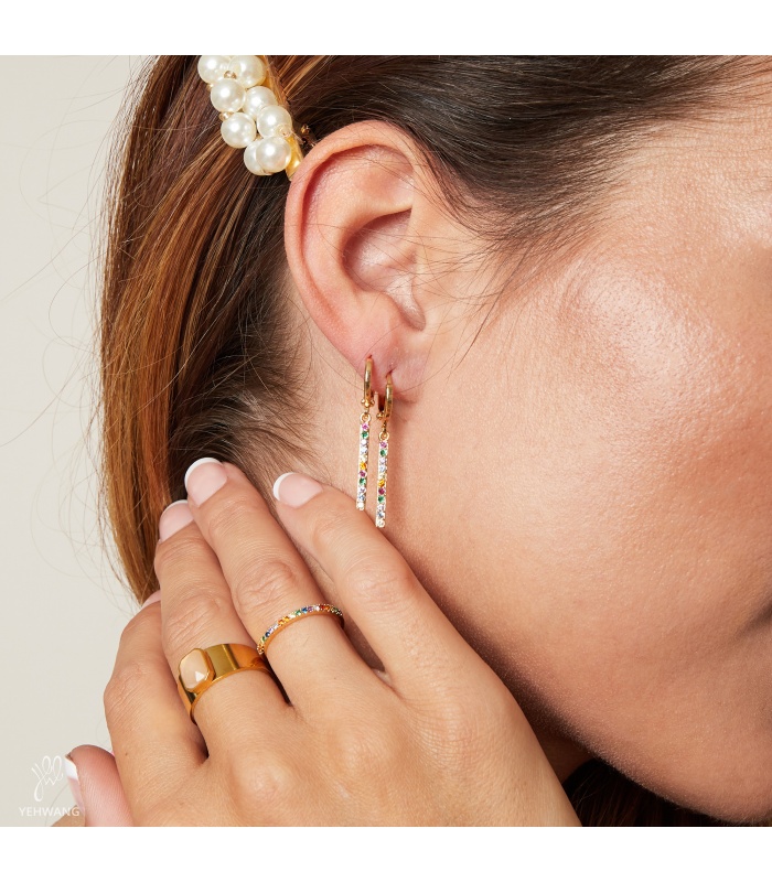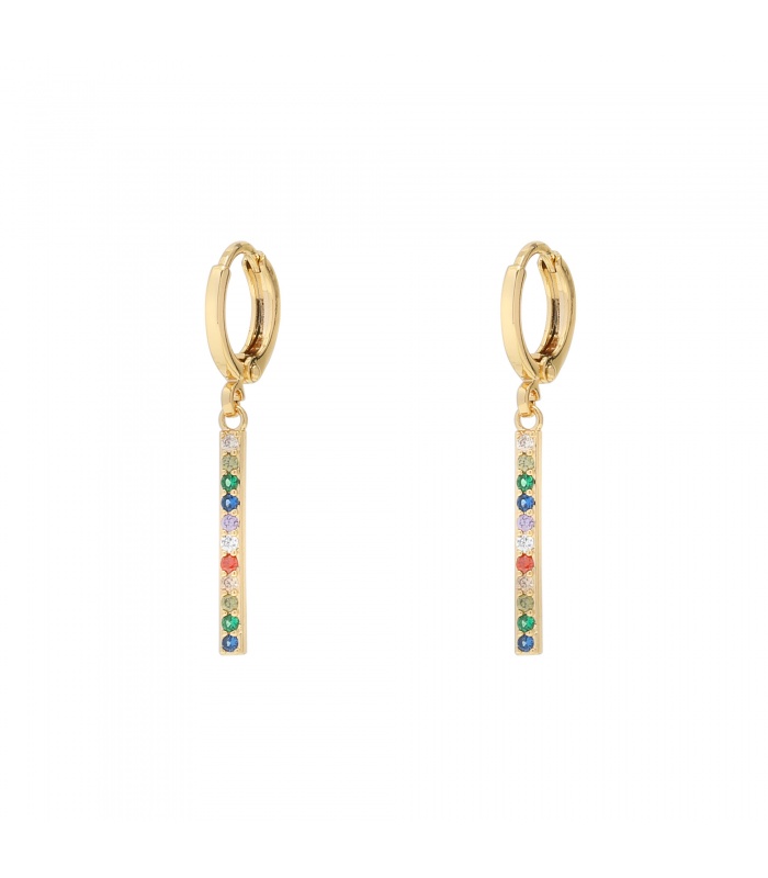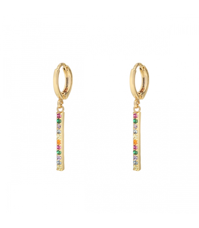 Goudkleurige oorringen met staafje en gekleurde strassteentjes