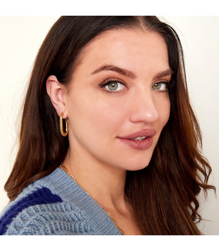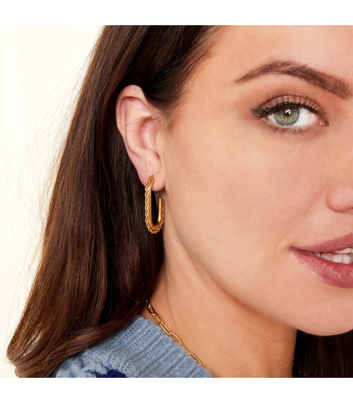 Goudkleurige ovale oorbellen met gedraaide ketting.