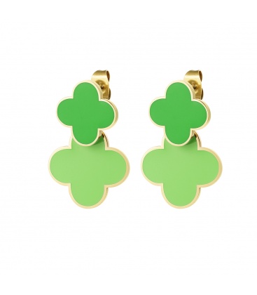 Hoe leuk zijn deze prachtige oorbellen met 2 grote klavertjes in de kleur groen. Deze prachtige statement oorbellen maken jouw look helemaal compleet! De oorbellen zijn gemaakt van Stainless Steel in combinatie met enamel en hebben een afmeting van 2 8 cm. Je shopt deze leukerds in de volgende kleuren: blauw - groen - zwart wit - roze - paars. Maak het assortiment van jouw winkel compleet met deze leuke oorbellen! Ben jij benieuwd geworden naar het gehele assortiment oorbellen van Yehwang? Bekijk dannbsp