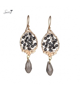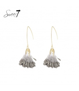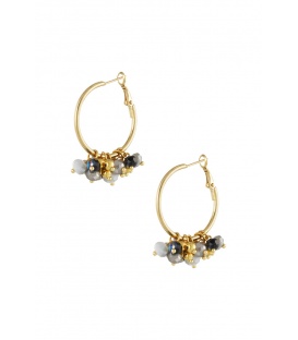 Goudkleurige oorhanger met grijze kralen. De lengte van deze oorbel is circa 6.5 cm. Voor oren met gaatjes. De oorbellen zijn nikkelvrij. De oorbellen zijn voorzien van stoppertjes.