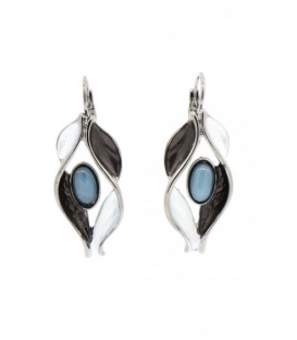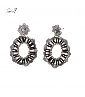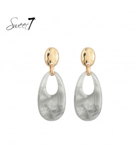 Langwerpig rechthoekige oorbellen in wit, grijs en zwarte tinten. De lengte van deze oorbel is circa 9 cm. Voor oren met gaatjes. De oorbellen zijn nikkelvrij. De oorbellen zijn voorzien van stoppertjes.