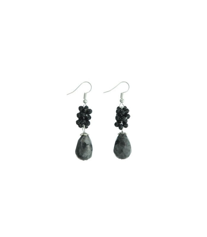 Antraciet grijze oorbellen met gefacetteerde steen