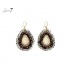 Grijze oorhangers met goudkleurige metaal in de hanger en koord.