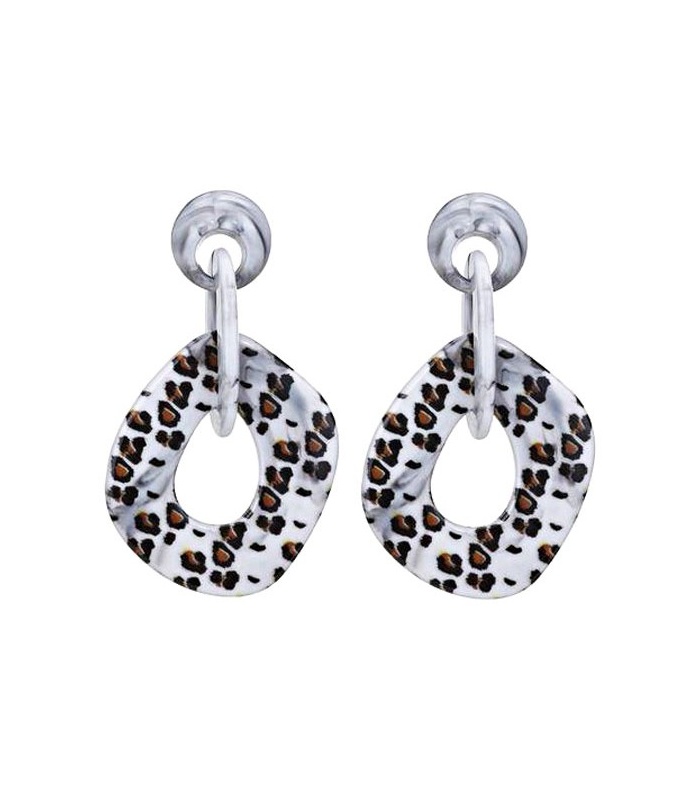 Trendy grijze oorbellen met marmerachtige leopard print.