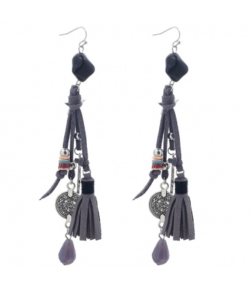 Grijze lange oorbellen met bedel en...