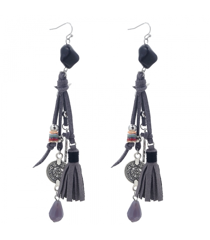 Grijze lange oorbellen met bedel en kralen