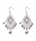 Grijze lange oorbellen met bedel en kralen.