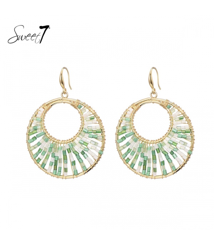 Bent u op zoek naar opvallende oorhangers die uw look een extra touch geven? Dan zijn de goudkleurige oorhangers met groen witte kraaltjes van het merk Sweet7 een perfecte keuze. Deze oorhangers zijn gemaakt van hoogwaardig materiaal en hebben een prachtig, luxueus design.