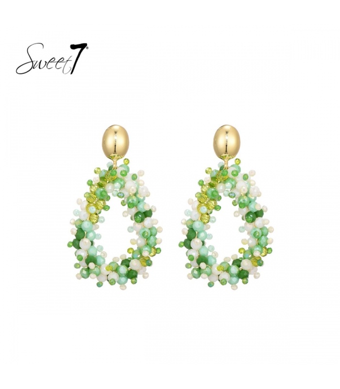 Groen gekleurde oorhangers goudkleurig oor stukje