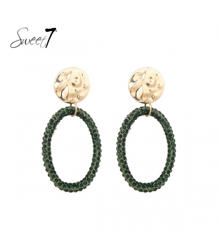 Groene oorbellen met een ovale hanger en sprankelende strass steentjes. Deze oorbellen combineren glamour met fashion en zijn ideaal voor een trendy look die iedere outfit accentueert. De goudkleurige accenten versterken de luxe uitstraling. De oorbellen zijn nikkelvrij en inclusief stoppertjes. Perfect om te dragen bij sierlijke, modieuze styling en accessoires zoals statement kettingen of elegante avondlooks. Zet deze oorbel in de spotlight en shop jouw fashion must-have.