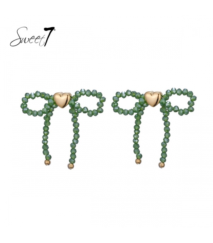 Deze charmante oorhangers combineren een elegante groene strik met een verfijnd goudkleurig hartje, wat zorgt voor een speelse en modieuze uitstraling. Perfect om zowel casual als formele outfits een unieke touch te geven.