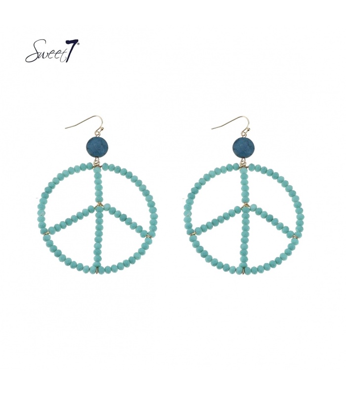 Mint groene kralen oorhangers met een peace teken .