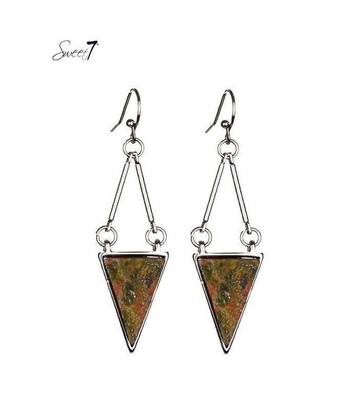 Mooie ruitvormige oorbellen met inleg van rood groene natuursteen