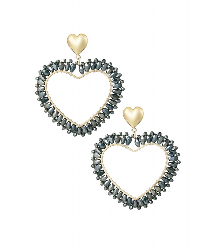 Hoe kan ik deze donker groene glaskralen oorhangers met goudkleurig hartje het beste stylen?
