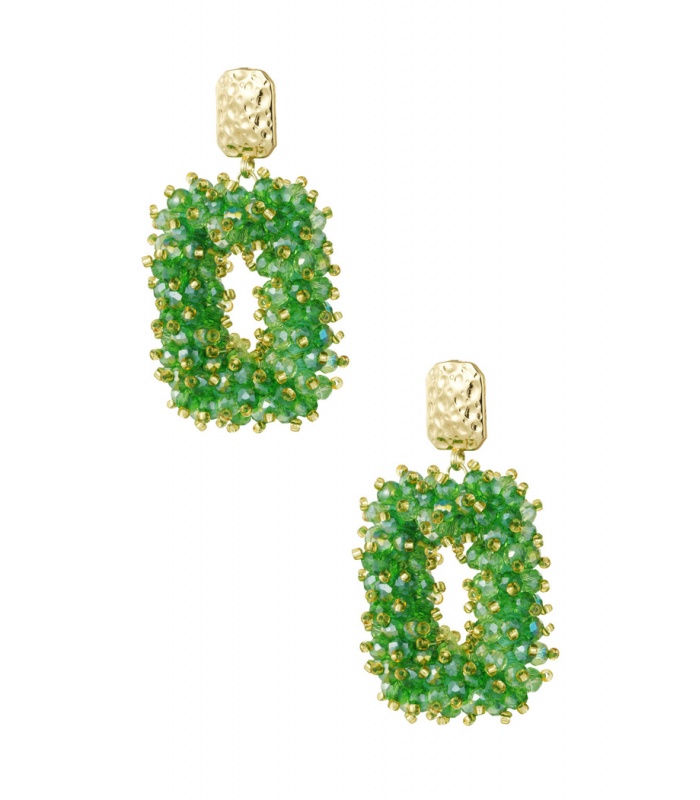 Schitterende groene glas kralen oorhangers met een prachtig goudkleurig oor stukje. Deze elegante oorbellen zijn perfect voor het toevoegen van een vleugje glamour aan elke outfit. De levendige groene kleur van de glaskralen straalt verfijning uit en trekt moeiteloos de aandacht naar je gezicht. Het goudkleurige oor stukje voegt een luxe accent toe, waardoor deze oorhangers een must-have zijn voor je sieradencollectie.