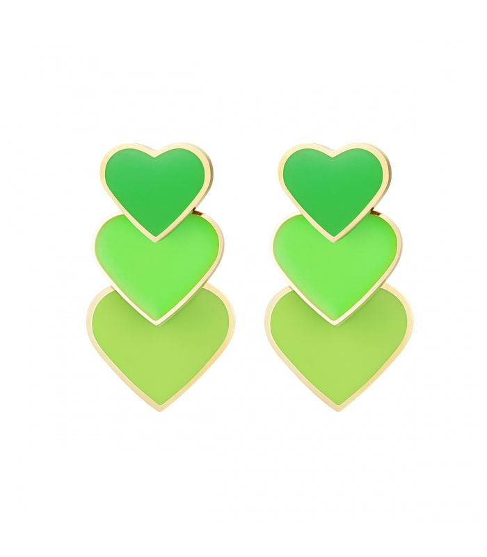 Hoe tof is dit paar oorbellen in de kleur groen met 3 grote harten van Yehwang!