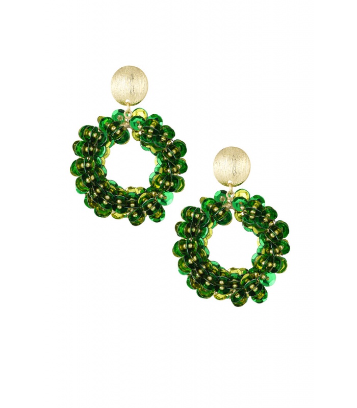 Groene oorbellen met goudkleurige kralen en oor stukje voegen een vleugje elegantie toe aan elke outfit. De combinatie van levendige groene tinten en glanzende goudkleurige accenten zorgt voor een verfijnde en modieuze uitstraling. Perfect voor zowel dagelijkse gelegenheden als speciale evenementen.