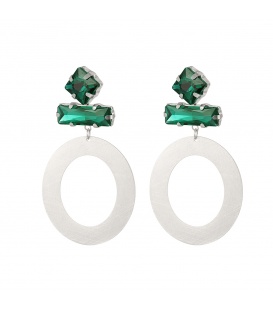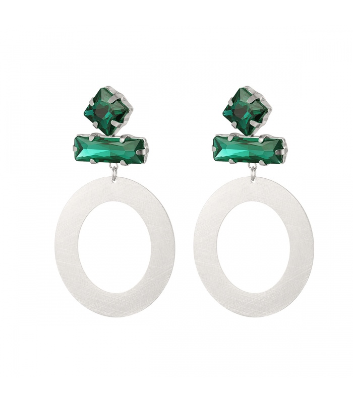 Zilverkleurige ronde oorhangers met 2 glas steentjes.