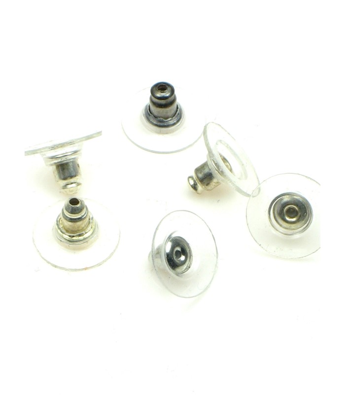 Zilverkleur oorbellen stoppertjes met plastic ring. Oorbellen achterkantjes