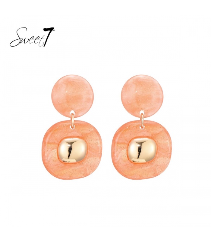 Oorbellen in koraalrood met een goudkleurig detail. Deze oorbellen combineren een warme tint met een glanzend accent, waardoor ze een opvallend mode-item zijn. Ze zijn lichtgewicht en geschikt voor zowel casual als chique gelegenheden.