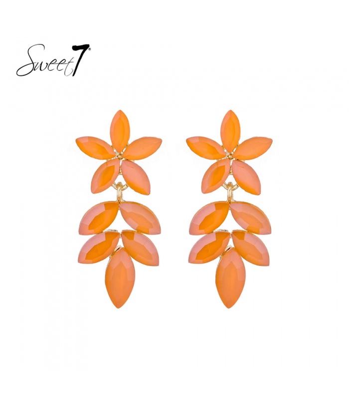 Wil je opvallen met een frisse, zomerse look? Deze opvallende oorbellen in bloemvorm combineren glanzende oranje steentjes met een elegante goudkleurige basis. Ze geven elke outfit een speelse en vrouwelijke touch. Ideaal voor feestjes, vakantiedagen of gewoon overdag.