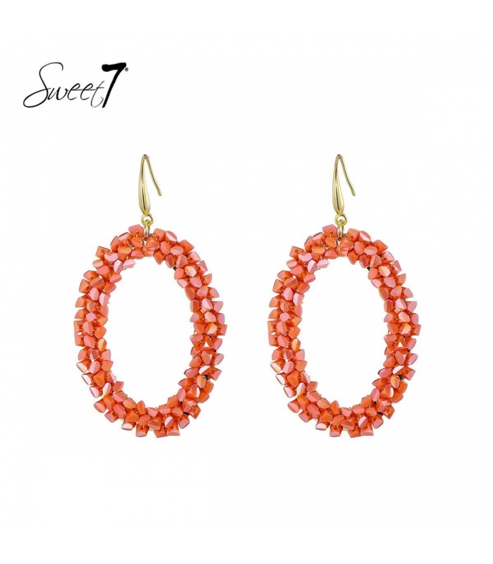 Deze oranje oorhangers met glassteentjes zijn een prachtige aanvulling op je sieradencollectie. De levendige oranje tint gecombineerd met fonkelende glassteentjes zorgt voor een elegante uitstraling. Deze oorbellen zijn geschikt voor oren met gaatjes en zijn nikkelvrij, wat zorgt voor een comfortabele draagervaring.