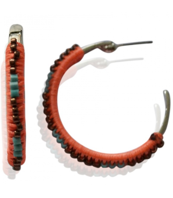 Oranje gehaakte creolen met gekleurde kleine kraaltjes