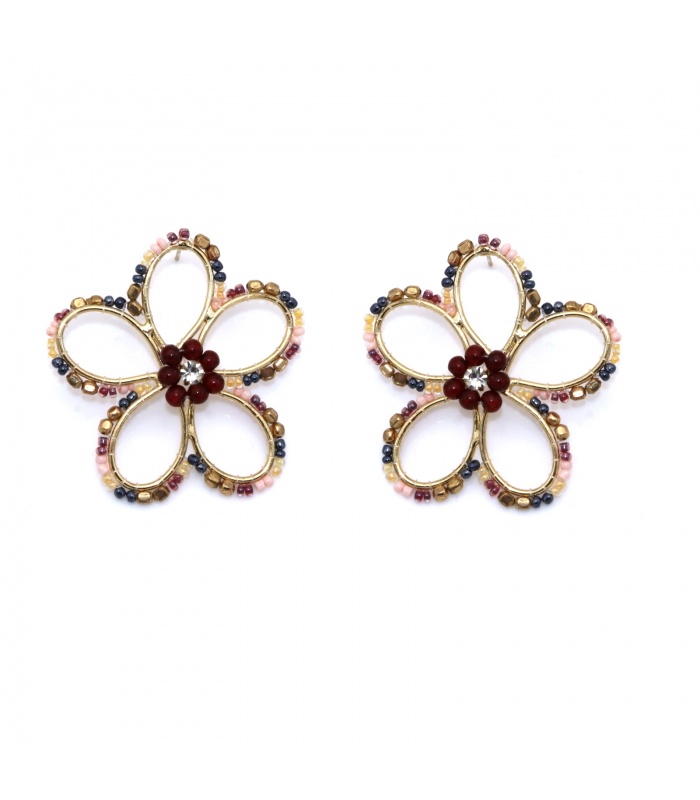 Bloemen brengen kleur in je look. Deze oorbellen combineren speelse bloemenmotieven met fijne kraaltjes. De kleurrijke kralen vangen het licht en zorgen voor een vrolijke uitstraling. Perfect om je outfit een zomerse touch te geven