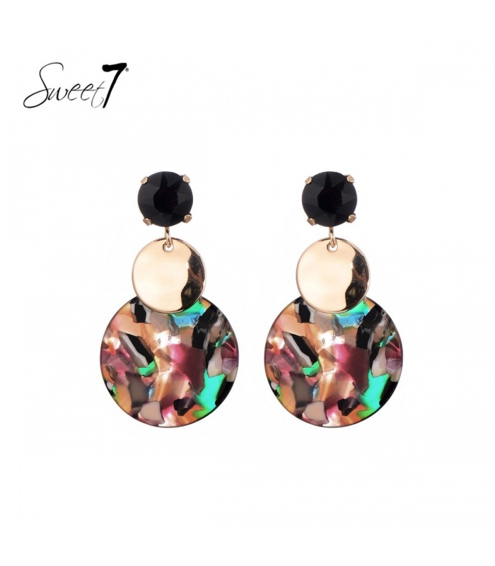 Gekleurde oorhangers met een goudkleurig element en een zwart oor stukje