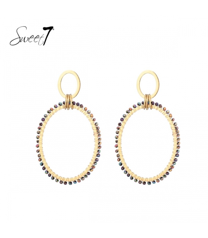 Ontdek onze prachtige goudkleurige oorhangers, verfraaid met levendig gekleurde glaskralen rond de hanger. Deze oorhangers voegen niet alleen een vleugje glamour en klasse toe aan je look, maar ook een speels en kleurrijk accent. Met zorgvuldig ontworpen details stralen deze oorhangers een perfecte balans uit tussen verfijning en eigentijdse charme. Ben je op zoek naar het ideale accessoire om je look te verlevendigen? Zoek niet verder.