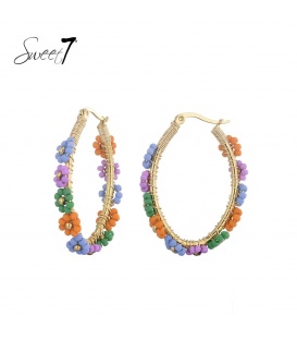Deze prachtige oorbellen combineren het tijdloze ontwerp van oorringen met een speelse en kleurrijke twist. De bloemen zorgen voor een vrolijke en unieke uitstraling, perfect voor elke modebewuste vrouw die houdt van een vleugje kleur in haar sieradencollectie.