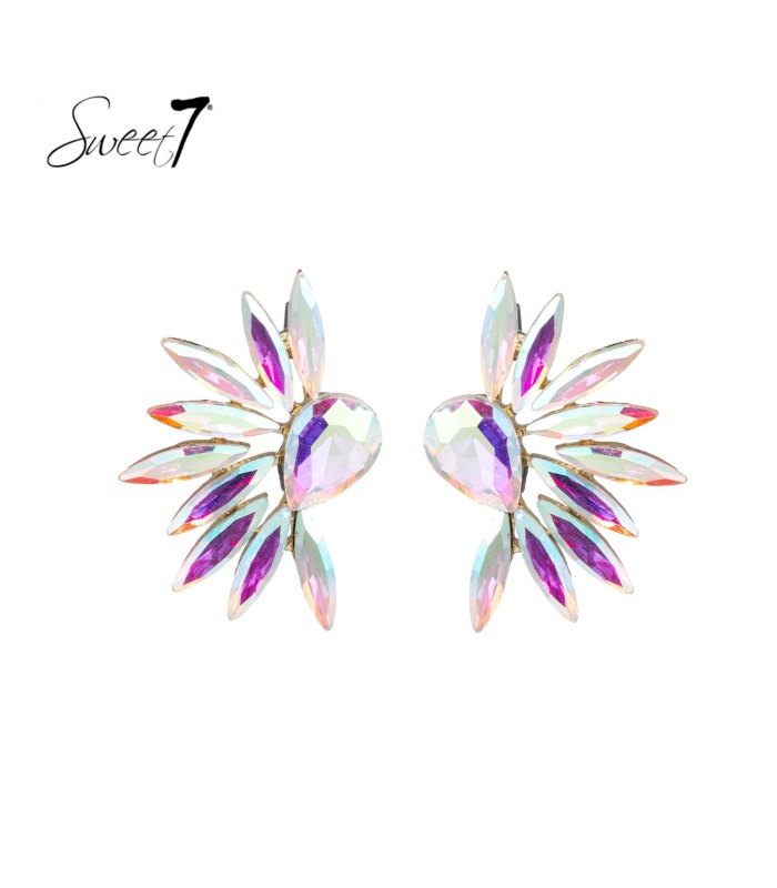 Wil je elegantie en glamour in een oorbel? Deze goudkleurige oorbellen van Sweet7 combineren een verfijnde bladvorm met honderden fonkelende strass steentjes. De opengewerkte lijnen zorgen voor een luchtige uitstraling.