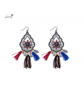 Zwarte oorhangers met gekleurde steentjes ,bedels en kwasten.