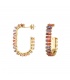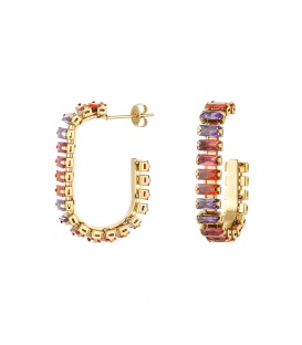 Prachtige goudkleurige oorhangers met paarse en rode zirkonia steentjes.