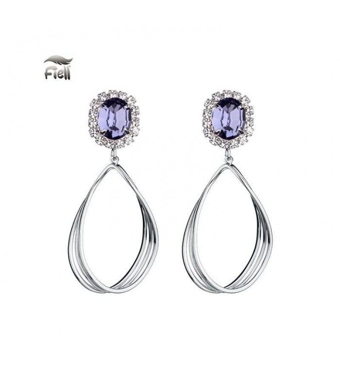 Hoe voeg je elegantie en beweging toe aan je outfit? Deze oorbellen combineren een sprankelende paarse steen met een omlijsting van heldere kristallen en een sierlijk open druppelvorm in zilverkleur. Het ontwerp oogt verfijnd en zorgt voor een stijlvolle flow.