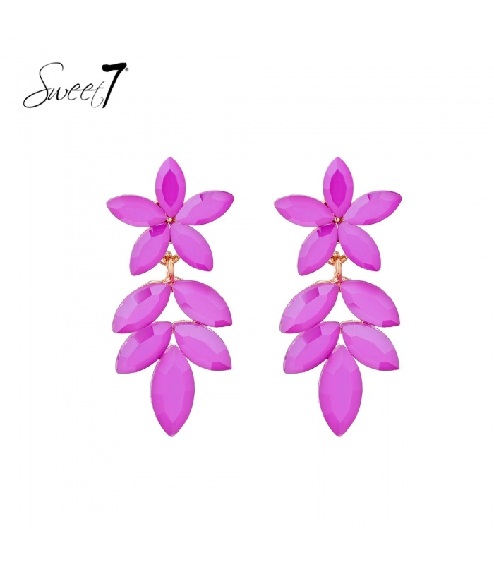 Wil je een statement maken met kleur? Deze paarse oorbellen in bloemvorm zijn een echte eyecatcher. De levendige tint paars in combinatie met de goudkleurige basis zorgt voor een krachtige en modieuze uitstraling bij elke look.