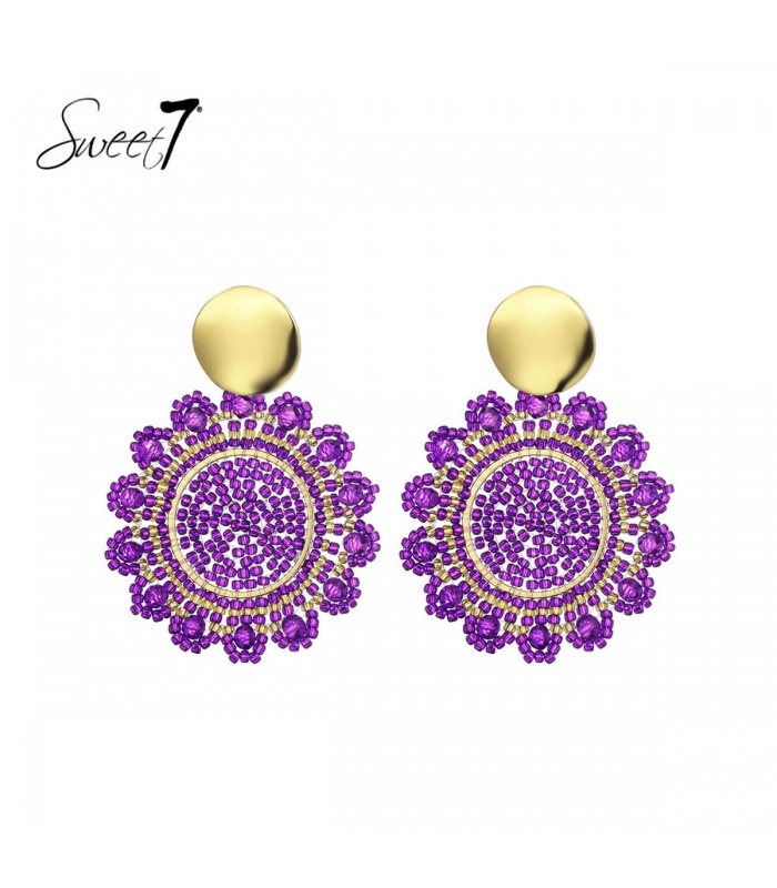 Paarse glas kralen oorhangers met een goudkleurig oor stukje