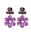 Paarse oorhangers van glaskralen en een goudkleurig oorstukje.