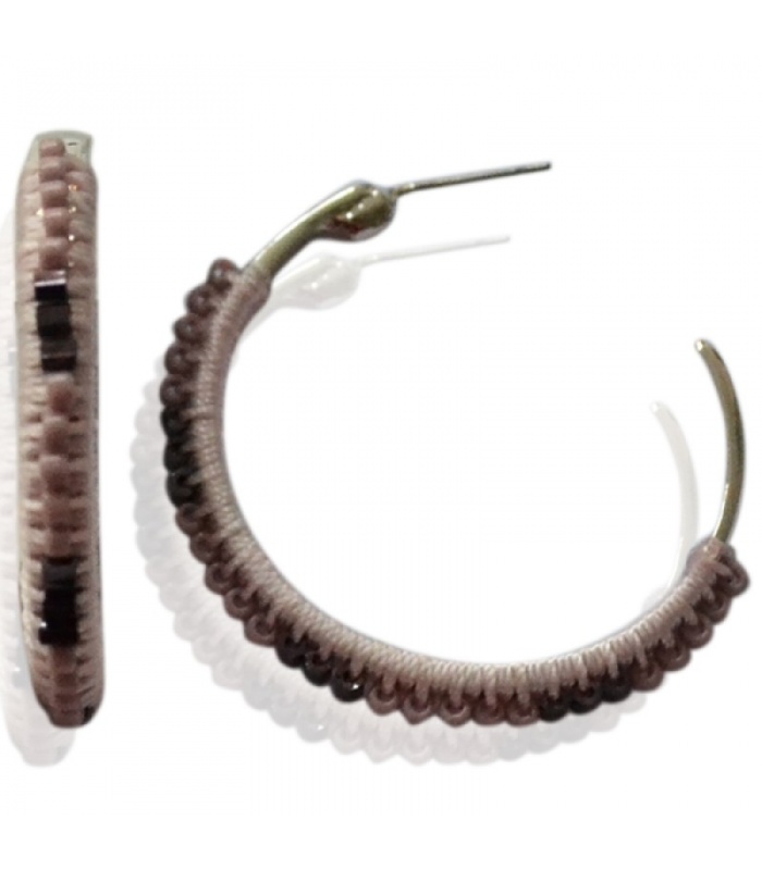 Paarse gehaakte creolen met gekleurde kleine kraaltjes.