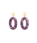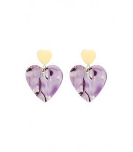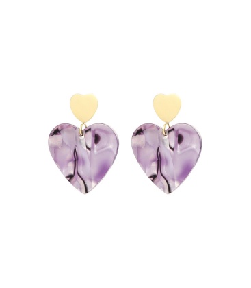 Paarse harten oorhangers en een goudkleurig harten oor stukje