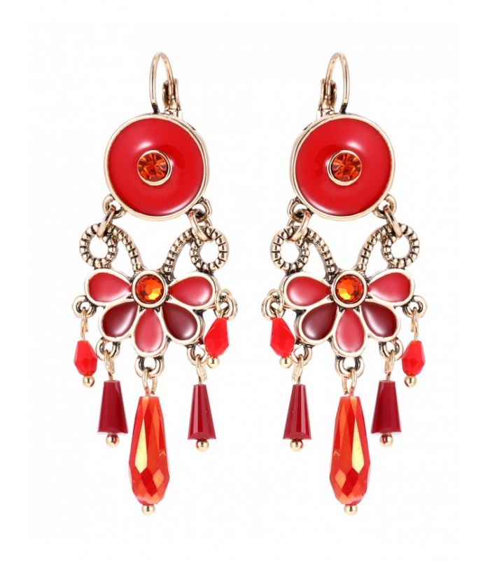 Oorbellen met stras-steentjes geven elke outfit een chique uitstraling. Deze oorbellen combineren die sprankelende stras-steentjes met rode kralen, wat zorgt voor een opvallend contrast en een levendige uitstraling.