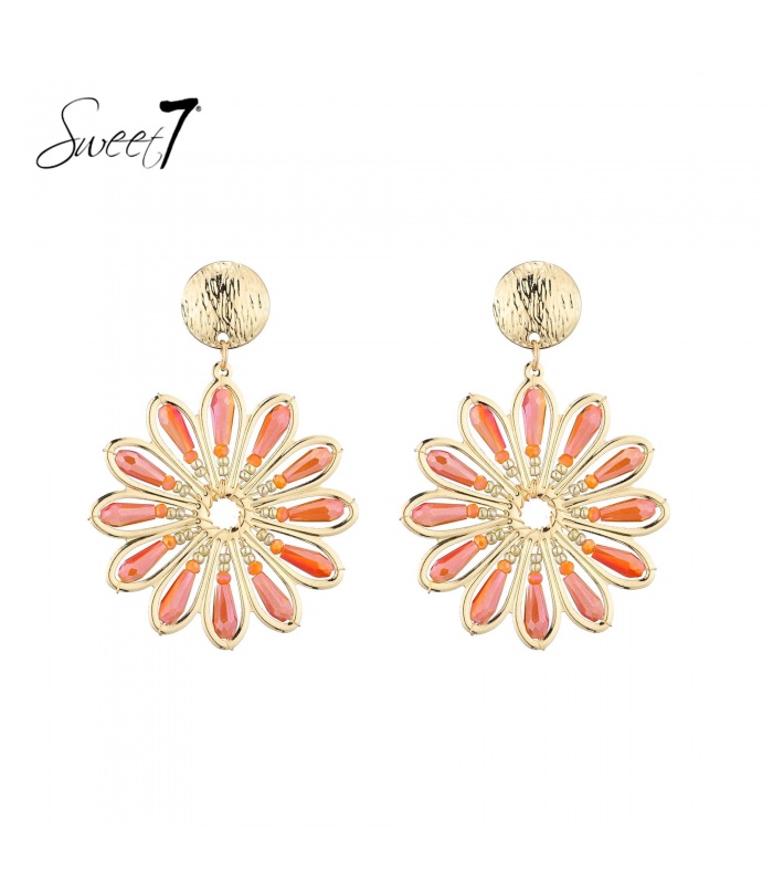 Deze bloemvormige oorbellen van Sweet7 vangen de energie van een lentedag in volle bloei. Met hun rode tinten en fonkelende blaadjes in goudkleur stralen ze kracht en zachtheid uit. Ideaal voor wie houdt van opvallende sieraden.