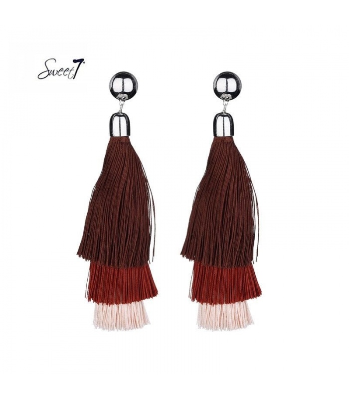 Zoek je statement oorbellen die echt opvallen? Deze oorbel met speelse franjes in bruin, rood en nude maakt elke look direct boeiend. De glanzende zilverkleurige knop geeft een moderne twist. Perfect voor zowel casual outfits als avondstyling.